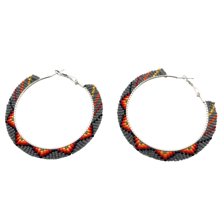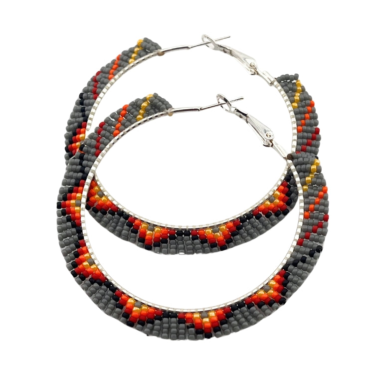 Earrings made from glass beads by Miwok/Chuckchansi artist Courtney Dayhoff.
