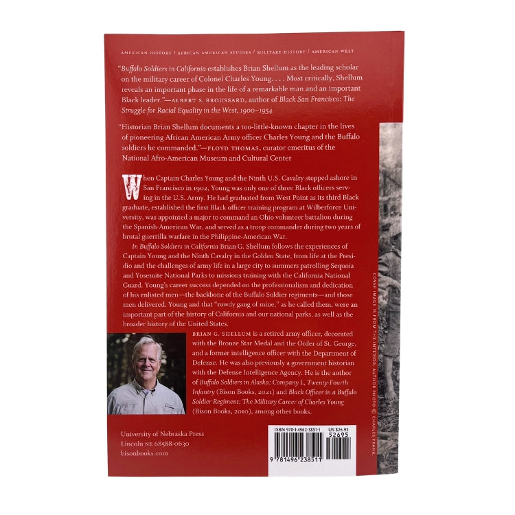 In Buffalo Soldiers in California Brian G. Shellum follows the experiences of Captain Young and the Ninth Cavalry in the Golden State, from life at the Presidio and the challenges of army life in a large city to summers patrolling Sequoia and Yosemite National Parks to missions training with the California National Guard. Young’s career success depended on the professionalism and dedication of his enlisted men—the backbone of the Buffalo Soldier regiments—and those men delivered. Young and that “rowdy gang of mine,” as he called them, were an important part of the history of California and our national parks, as well as the broader history of the United States.