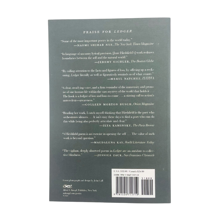 Ledger‘s pages hold the most important work yet by Jane Hirshfield, one of our most celebrated contemporary poets. From the already much-quoted opening lines of despair and defiance (“Let them not say: we did not see it. / We saw”), Hirshfield’s poems inscribe a registry, both personal and communal, of our present-day predicaments.