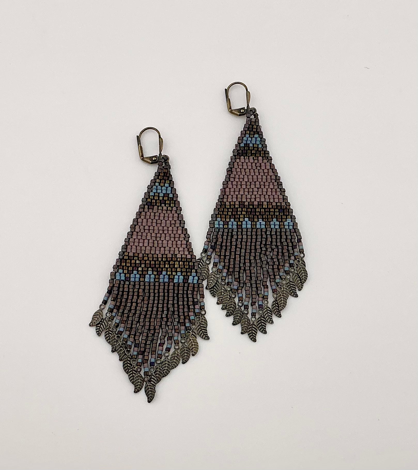 Large beaded earrings made from glass beads and natural materials. Handcrafted by Native American artisan Deborah Hearing.