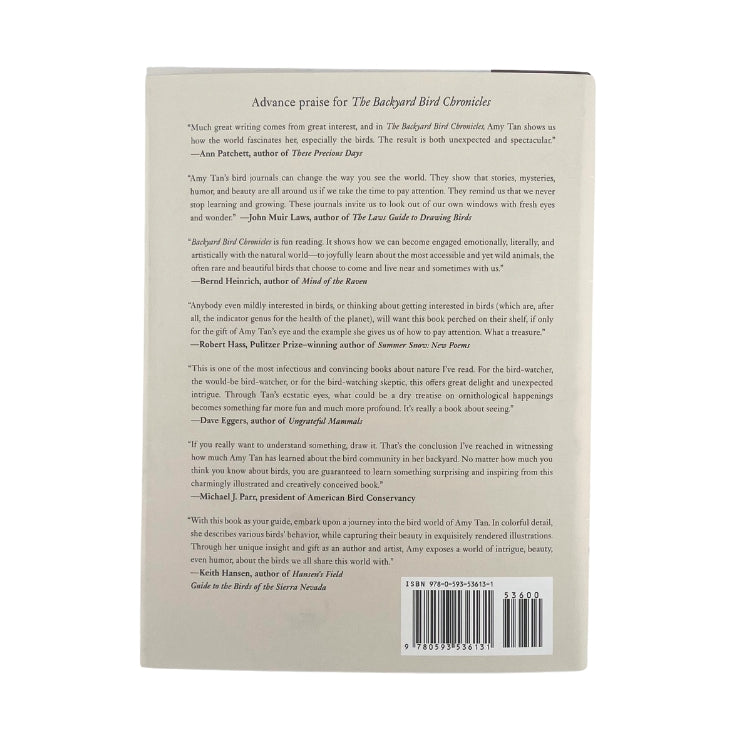 In 2016, Amy Tan grew overwhelmed by the state of the world: Hatred and misinformation became a daily presence on social media, and the country felt more divisive than ever. In search of peace, Tan turned toward the natural world just beyond her window and, specifically, the birds visiting her yard. But what began as an attempt to find solace turned into something far greater—an opportunity to savor quiet moments during a volatile time, connect to nature in a meaningful way, and imagine the intricate lives of the birds she admired.