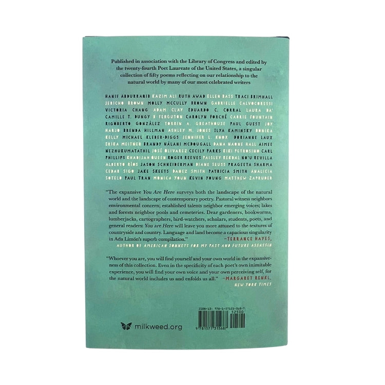 You Are Here features fifty previously unpublished poems from some of the nation's most accomplished poets, including Joy Harjo, Diane Seuss, Rigoberto González, Jericho Brown, Aimee Nezhukumatathil, Paul Tran, and more. Each poem engages with its author's local landscape-be it the breathtaking variety of flora in a national park, or a lone tree flowering persistently by a bus stop-offering an intimate model of how we relate to the world around us and a beautifully diverse range of voices from across the United States.